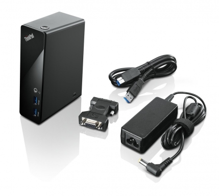 The ThinkPad USB 3.0 Dock provides a quick and easy connection to all the workspace peripherals you use every day. Simply plug in a single USB 3.0 cable into your Lenovo PC for instant access to up to two external monitors, Gigabit Ethernet, headphones/speakers, USB printers and scanners, keyboard, mouse, and up to 5 Gbit/s access to external storage (over 10 times faster than USB 2.0).