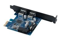 ORICO PVU3-2O2I is a PCI-Express card with 2* USB 3.0 EXTERNAL ports and 2*USB 3.0 Internal ports expanded by 20pin connector (Notice: 20pin data cable in not included)