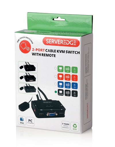 The Serveredge KP02UHA is a 2-port compact HDMI USB “Cable KVM Switch” with 2 sets of fixed KVM cables and a wired QuickSwitch! button for easy connection to your two computers. It allows you to access, control, boot and reboot two HDMI and USB-enabled multimedia computers with only one USB keyboard, mouse, HDMI-enabled multimedia display and an extra set of speakers. For easy and fast switching between two computers, you can use either keyboard hotkeys, the QuickSwitch! button or the Switching Software Client installed on your PCs!