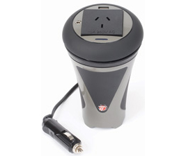 The Targus 100W Auto Power Inverter - Cupholder Style is designed for the mobile professional or recreational user. It provides a power source for most electrical devices in RVs, cars or boats. It is designed to conveniently fit into most standard cup holders. Simply plug the inverter into the cigarette lighter plug and power or charge up to three devices including notebooks, mobile phones, PDAs, video consoles and many others. It features one 240V AC socket, one USB port, and one Targus PPS port. The PPS port can be used with the Targus Auto/Dual Digital Device Power Adaptor (APP20AP). The APV11AUcan deliver 100W of continuous and up to 150W of peak power. It is safe to use and features over-current, over-temperature and surge protection. The APV11AU is targeted for mobile professionals or recreational users looking for a power source that can be used conveniently in their vehicle.