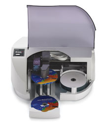 Hands-Free Printing of DVDs and CDsHave you ever had to print discs one at time or manually apply sticky labels? If so, you know how much time and effort is involved. Even ordering discs from an outside vendor takes too much time and is too expensive. You’ve probably thought to yourself, “there has to be a better way!”.Now there is. It’s the new Bravo SE Autoprinter from Primera. Bravo SE Autoprinter is a compact, all-in-one automated disc printing factory that fits right on your desktop. It produces full-colour high quality discs that make your business or organisation look truly professional.Advanced RoboticsBravo SE takes the complex task of printing discs and makes it simple. It uses Primera’ssixth-generation robotics, ensuring reliable and efficient operation.Here’s how the process works:1. Bravo SE’s robot arm picks a blank disc from the input bin.2. The robot moves the disc to the built-in, 4800 dpi direct-to-disc inkjet color printer.3. The disc is printed.4. The robot picks the disc from the printer, places it into the output bin and startsover again.Bravo SE does all of the work for you – unattended and automatically. It saves youtime and money on every disc you produce!Many ApplicationsBravo SE is perfect for a wide variety of light- to medium-duty printing jobs. You can print individual discs with unique graphics or quantities of the same disc. Just a few of the most popular applications include video and music content, software, press kits, trade show handouts, instruction and training manuals, technical documentation, PowerPoint® presentations, catalogs – the possibilities are almost endless!Simple Installation and OperationEasy-to-use labeling software by SureThing™ is included for both Windows and Mac PCs. Installation is fast and easy, too. Just connect one cable, install one print cartridge and load one software program. You’ll be automatically printing discs in minutes.Disc Duplicator Model Also AvailableIf you need to burn and print, the Bravo SE Disc Publisher produces gorgeous, full-color discs in jobs of up to 20 discs at a time. It’s the perfect, low-cost automated burning and printing solution.