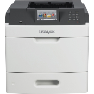 The Lexmark MS810de network-ready laser printer includes a 4.3-inch color touch-screen operator panel, internal 2-sided printing, 800 MHz processor, 512MB of memory, 650-sheet standard input and a front USB Direct print port.