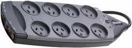 The Gold 8-Outlets Surge Suppressor is perfect for professional workstations, laser printers, broadband modems, home theatre systems, Ethernet networks, and everyday household electronics. Offering 2700 Joules, AC, phone/fax/modem & coaxial protection 360° rotating plug with insulated pins, cable management, and recessed sockets.
