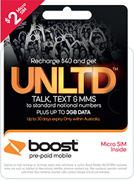 you! Whether you're after up to 5 days*, 10 days* or 30 days* of UNLTD, once your Boost Pre-paid Mobile service is activated, you can enjoy the freedom of UNLTD.