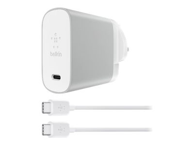 BELKIN 45W USB-C HOME CHARGER, USB-C(1) + USB-C TO USB-C CABLE INCLUDED, SILVER/WHITE (F7U010AU06-SLV)