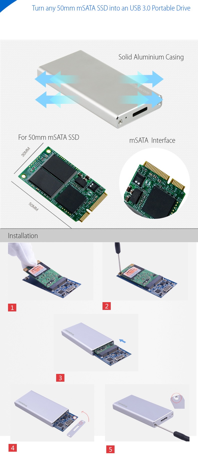 Supports 50mm and 25mm mSATA drives
