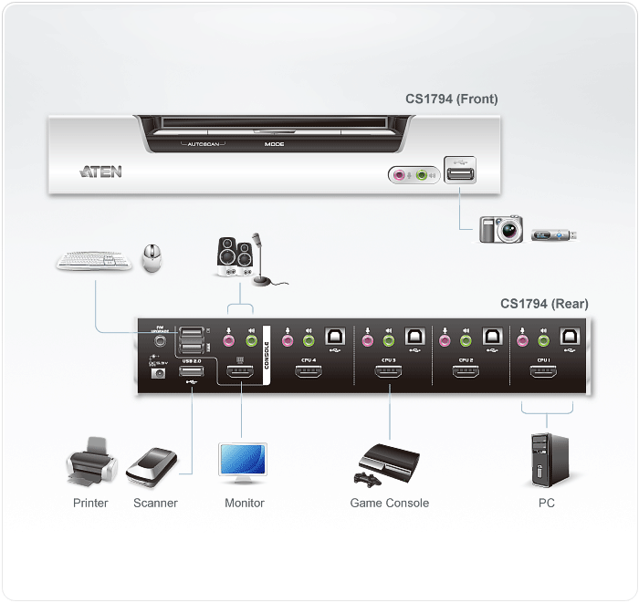 Aten CS-1794 – 4-Port USB 2.0 HDMI KVMP Switch