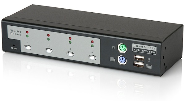 * Controls 4 computers from a single console (Keyboard/Mouse) through PS/2 and/or USB connections.