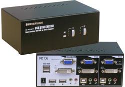 • 2-port Dual Monitor DVI/VGA KVM switch with audio & microphone switching