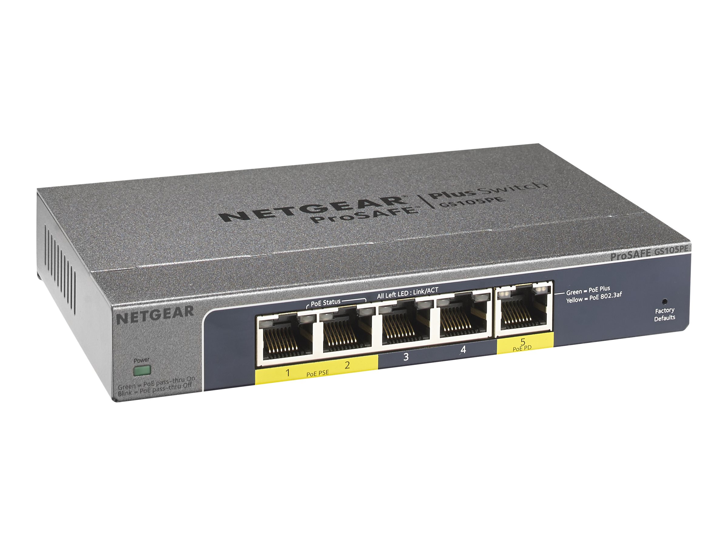 Product Description NETGEAR ProSafe Plus GS105PE - switch - 5 ports - unmanaged - desktop
