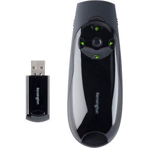 FEATURES Removable memory dongle stores your presentations. Wireless range up to 50 meters. Backlit buttons. Two modes switch instantly from presenter mode to cursor control mode. Low battery indicator. USB receiver stores inside.