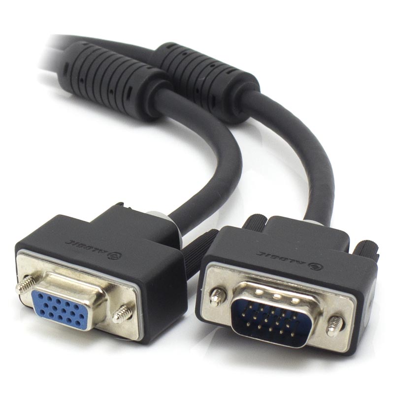 The ALOGIC VGA/SVGA Premium Shielded Monitor Extension Cable With Filter - Male to Female Cable is perfect for source to display connectivity for in-home desktop or in-wall commercial applications which require video resolutions of up to 1920 X 1200.The ALOGIC cable is foiled and braided shielded to reduce interference and noise. All the 15 pins are wired providing support for DDC2 (E-DDC) and Extended Display Identification Data (EDID) signals, i.e. communication of the displays capabilities, ensuring that the content from the source is sent at the optimal resolution for the display.The low-profile connectors make installing in tight spaces an easy job.